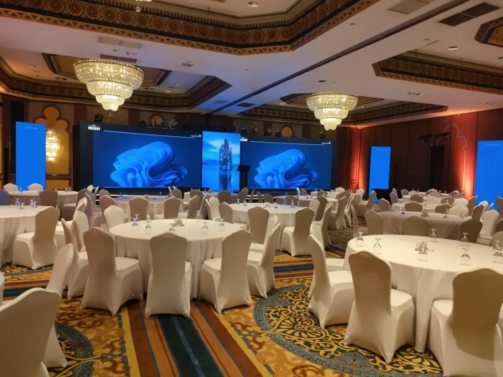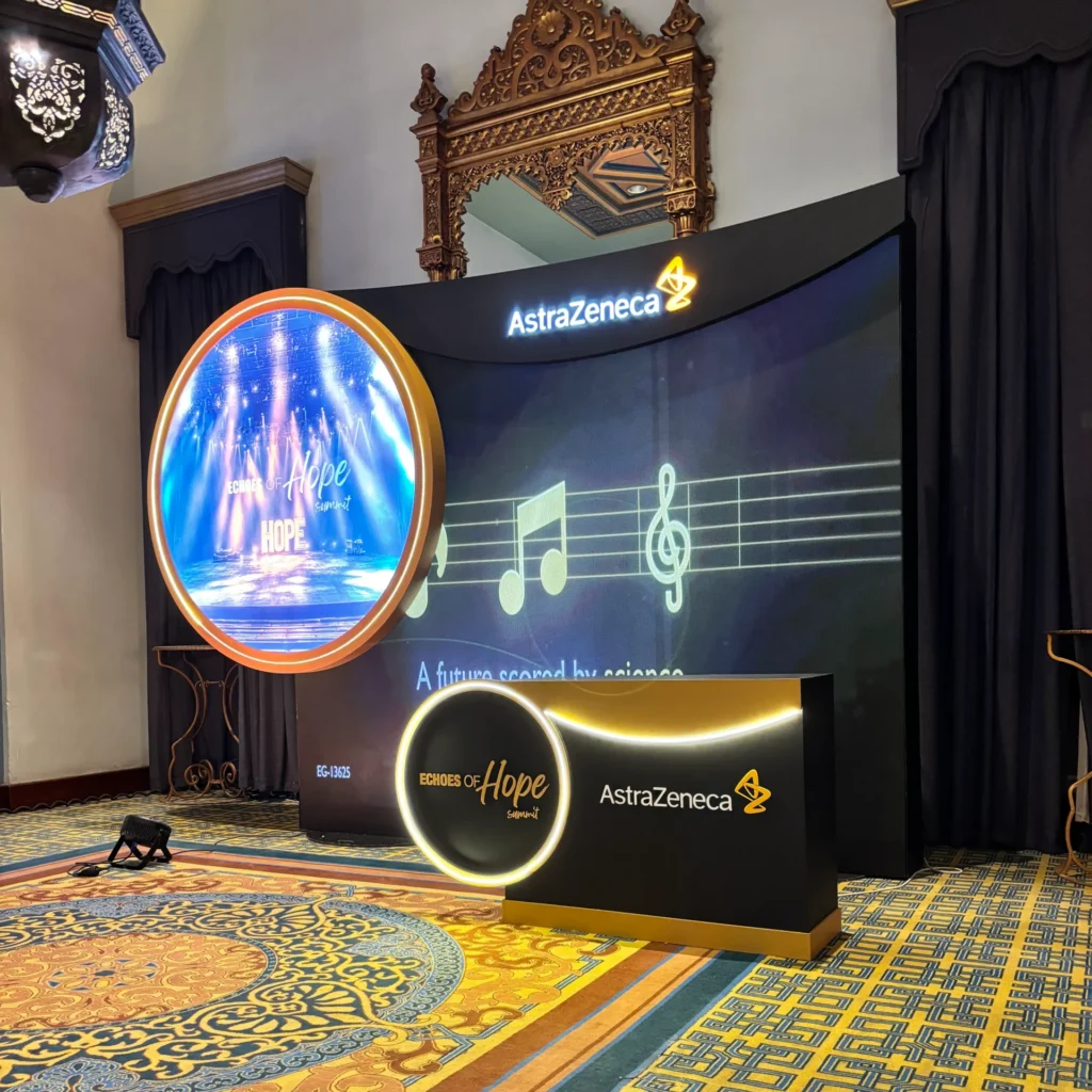 The Echoes of Hope Summit, powered by AstraZeneca, was a visionary event focused on innovation, ethics, and patient‑centered care in oncology. Insite Events Production was selected to deliver a fully immersive experience that matched the summit’s emotional and scientific depth. The venue was transformed with a dramatic tunnel‑style entrance featuring digital scenic visuals and bold branding. Inside, the space was elevated with elegant décor, large LED screens, and a layout designed for impactful presentations and networking. The summit’s theme, “Gone Beyond Trends”, was reflected in every detail, from the lighting to the messaging, creating a space where science met storytelling.