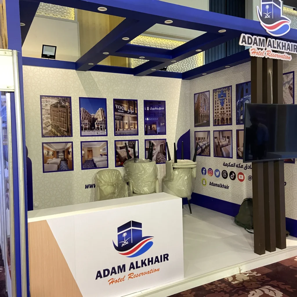 The concept focused on “Pilgrimage Meets Precision.” We designed each booth and setup to reflect the spiritual and logistical significance of the Hajj & Umrah journey. Whether in the expo hall or hotel venue, our goal was to create clean, welcoming spaces that honored tradition while showcasing innovation. From modular booths to personalized desk branding, we ensured every exhibitor felt represented and every visitor felt engaged.
